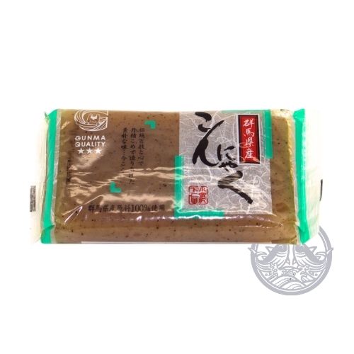 Traditioneller japanischer Konjac aus der Präfektur Gunma, die für ihre hochwertige Konjacwurzel bekannt ist. Schwarzer Konjac enthält fein gemahlene Algen, wodurch Farbe und Textur kräftiger werden. Ideal für Oden, Nabe, Nimono oder fettarme Gerichte.